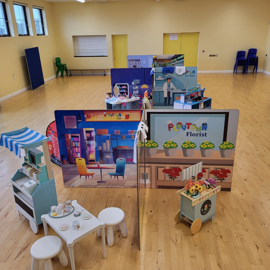 On hire for one week from Monday 2nd September 2024, the children have the use of a play town which is set up in our school hall.