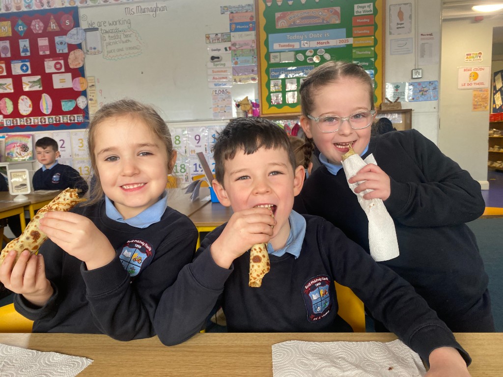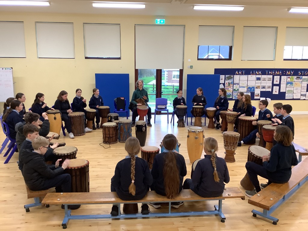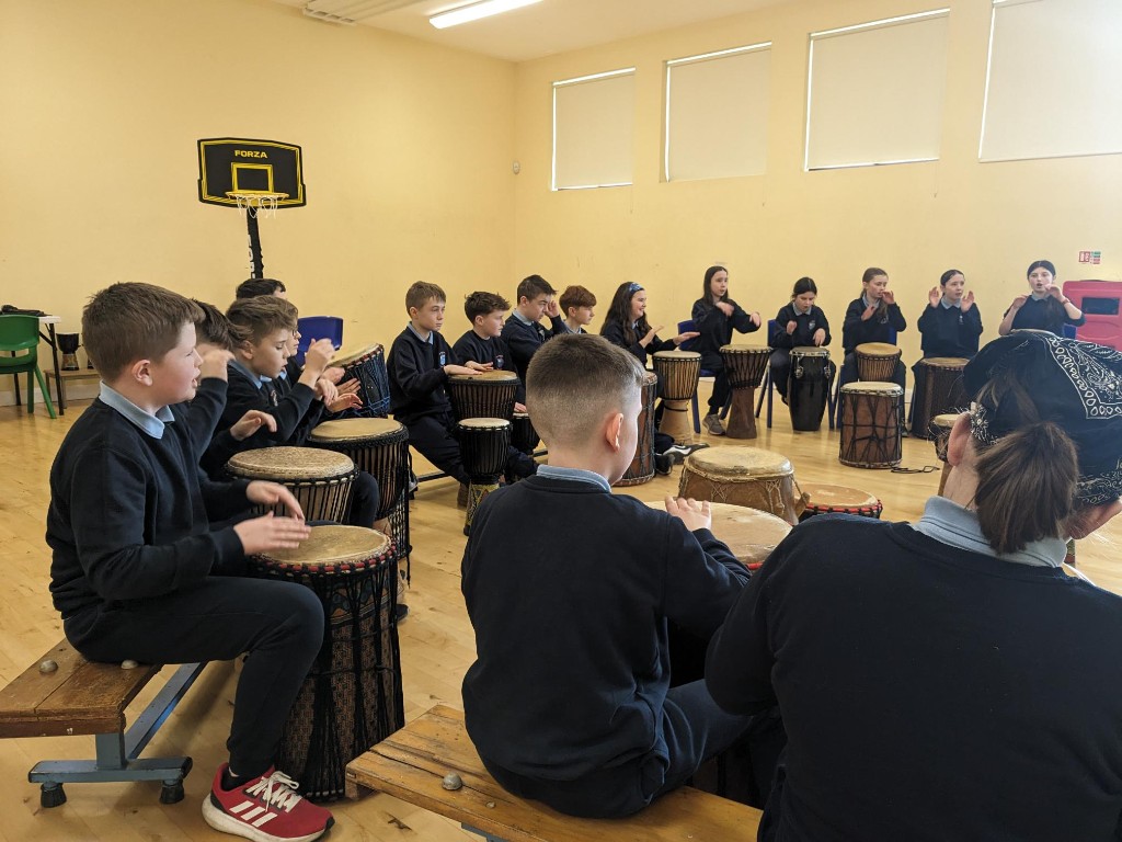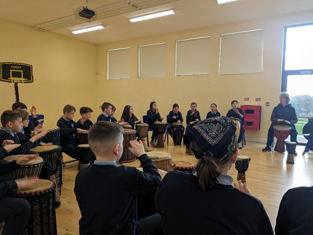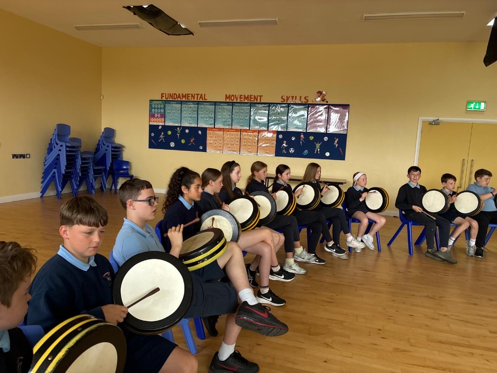 Pupils participated enthusiastically in a bodhrán workshop on Tuesday, 20th May. The bodhrán’s story goes way back possibly to ancient rituals, harvest tools, or even wool dyeing. Some say it’s been around since Celtic times; others believe it rose to fame in the 1960s thanks to Irish musical legend Seán Ó Riada, who helped bring it into the spotlight.
