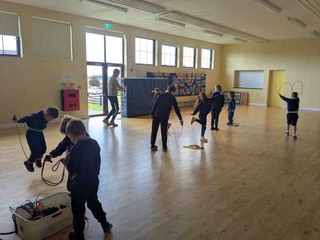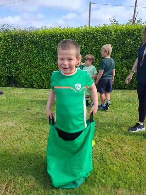 Active School week commenced on Monday 9th June, We had a great week of fun activities, the children took part in rugby and soccer thanks to Leinster Rugby and Cloghertown Utd for coming to our school and teaching the children new skills. We also had a fun time skipping with Mr. O'Neill and our sports days was great success. What a day we had for Sports Day. The weather made this day extra special, the children took park in running races, egg & spoon race, sack races, target pratice ,high jumps and a good oul tug o' war battle with the teachers and the children came out as champions! Well done to all who took part and thank you to the parents, grandparents and siblings who supported the children in their races. A fun day enjoyed by all!