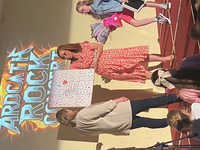 On Thursday, 29th May, we bid a heartfelt farewell to our beloved school secretary, Mrs Caroline Tuite, who has been the backbone of our school for 18 years. Her kindness, efficiency, and warm smile have brightened our days and made the school run smoothly. From organising events to supporting staff, pupils, and families, her dedication has been truly exceptional. She has been to the forefront of all that is good about our school and she will be sorely missed from her role. She leaves behind a legacy of hard work and care that will not be forgotten. She was joined, and received messages of best wishes at the event from her extended family, friends, previous clergy, Principals and Board members. A poem in her honour, penned by Mrs O'Sullivan, was recited by Mia Murphy before Mrs Tuite received presentations from pupils, staff and our Parents' Association. As she embarks on this new chapter, we wish her happiness, health, and success in all her future endeavors.