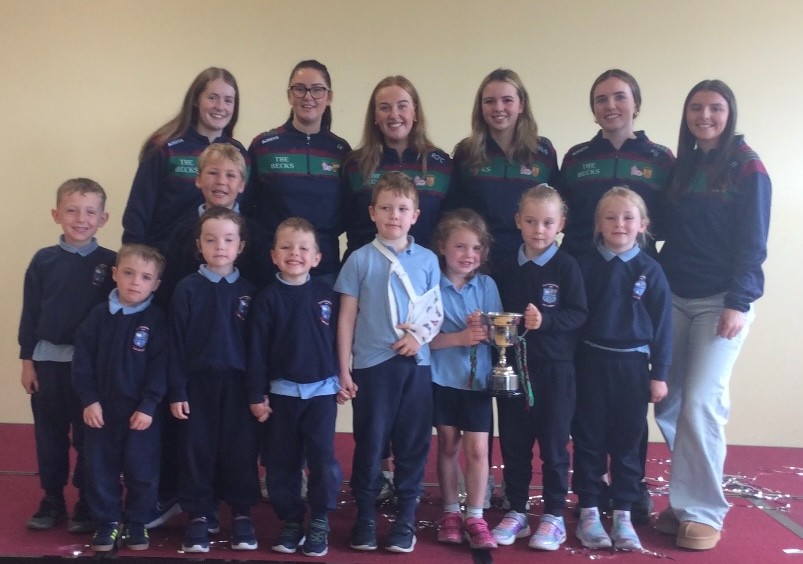 Three months after forming a first ever Ladies team for either club, Curraha/St.Vincents found themselves in a League final, after a hugely successful campaign saw them reach this point with a 100% record. Their opponents Nobber, also a newly formed side, had an excellent campaign as well and promised to be tough opponents. The game took place in Ardcath, in front of a massive crowd, and the conditions could not have been better on a perfect Summer's evening. Curraha/St.Vincents were victorious on the day and the ladies paid a visit to our school to display the cup on Friday, 30th May. We were honoured to welcome back many former pupils.