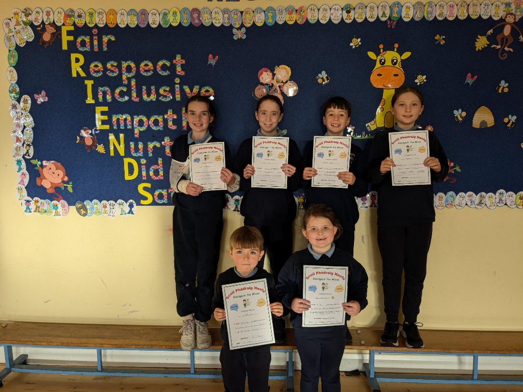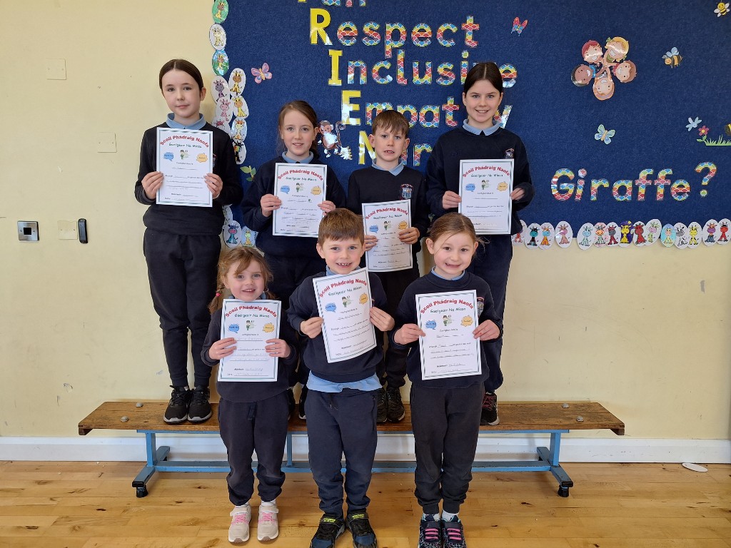 Tá Gaeilgeoir na Míosa ar ais! Faigheann páistí an gaisce seo nuair a dhéanann siad a ndícheall Gaeilge a labhairt i rith an lae, atá ag glacadh páirte i gceachtanna Gaeilge, agus atá ag déanamh a ndícheall an Ghaeilge a fhoghlaim! Comhghairdeachas lenár mbuaiteoirí go léir an mhí seo!