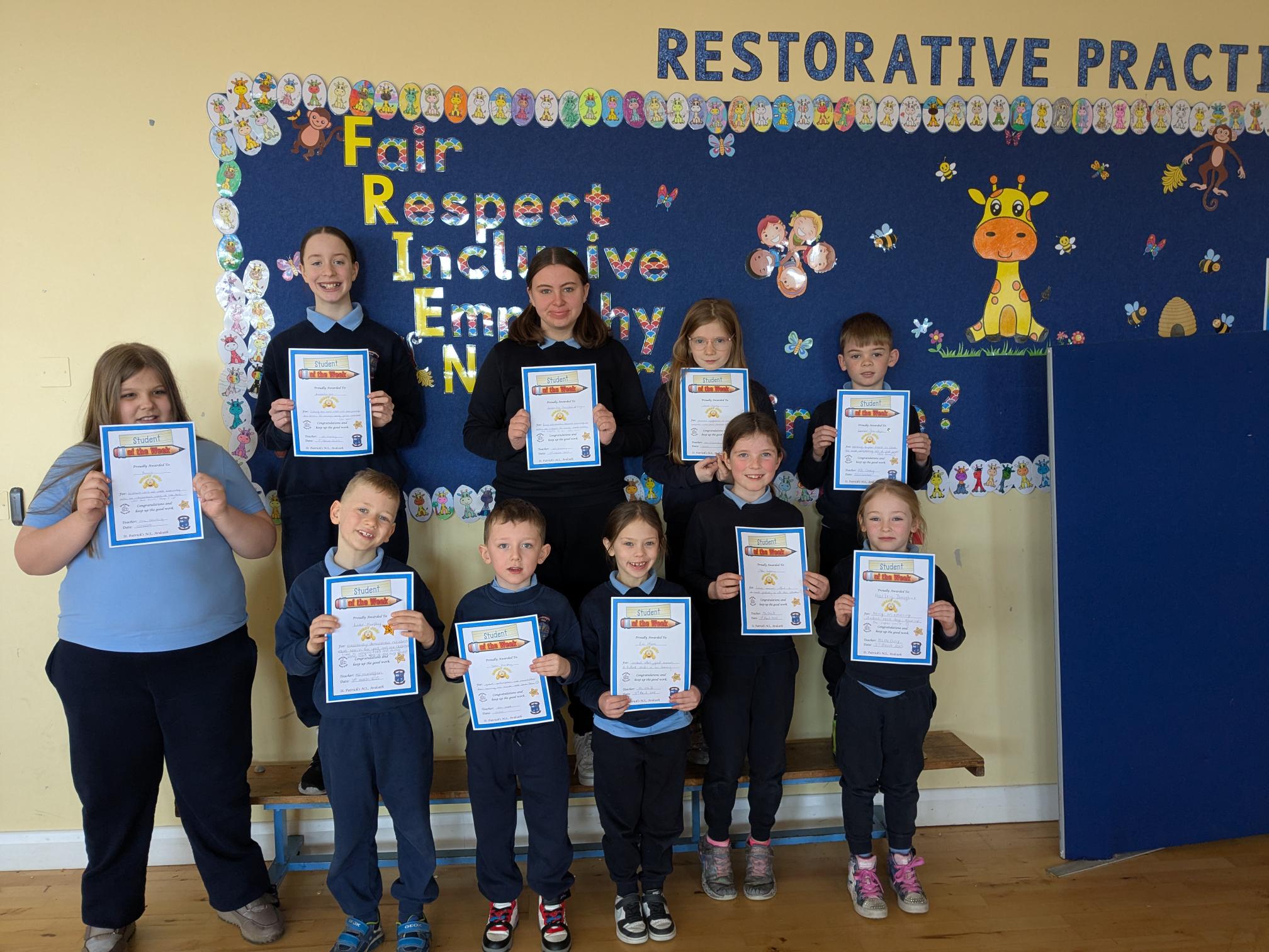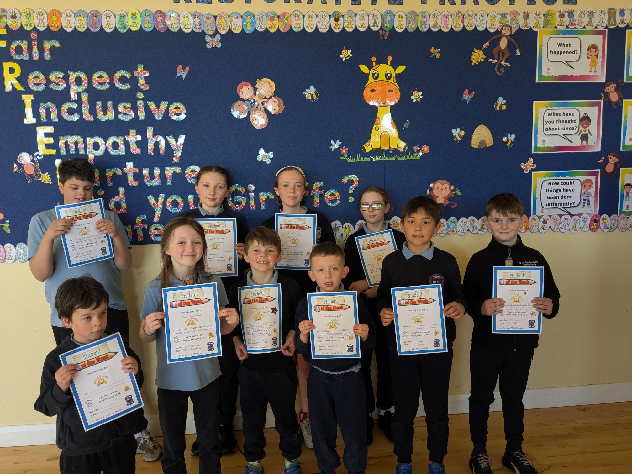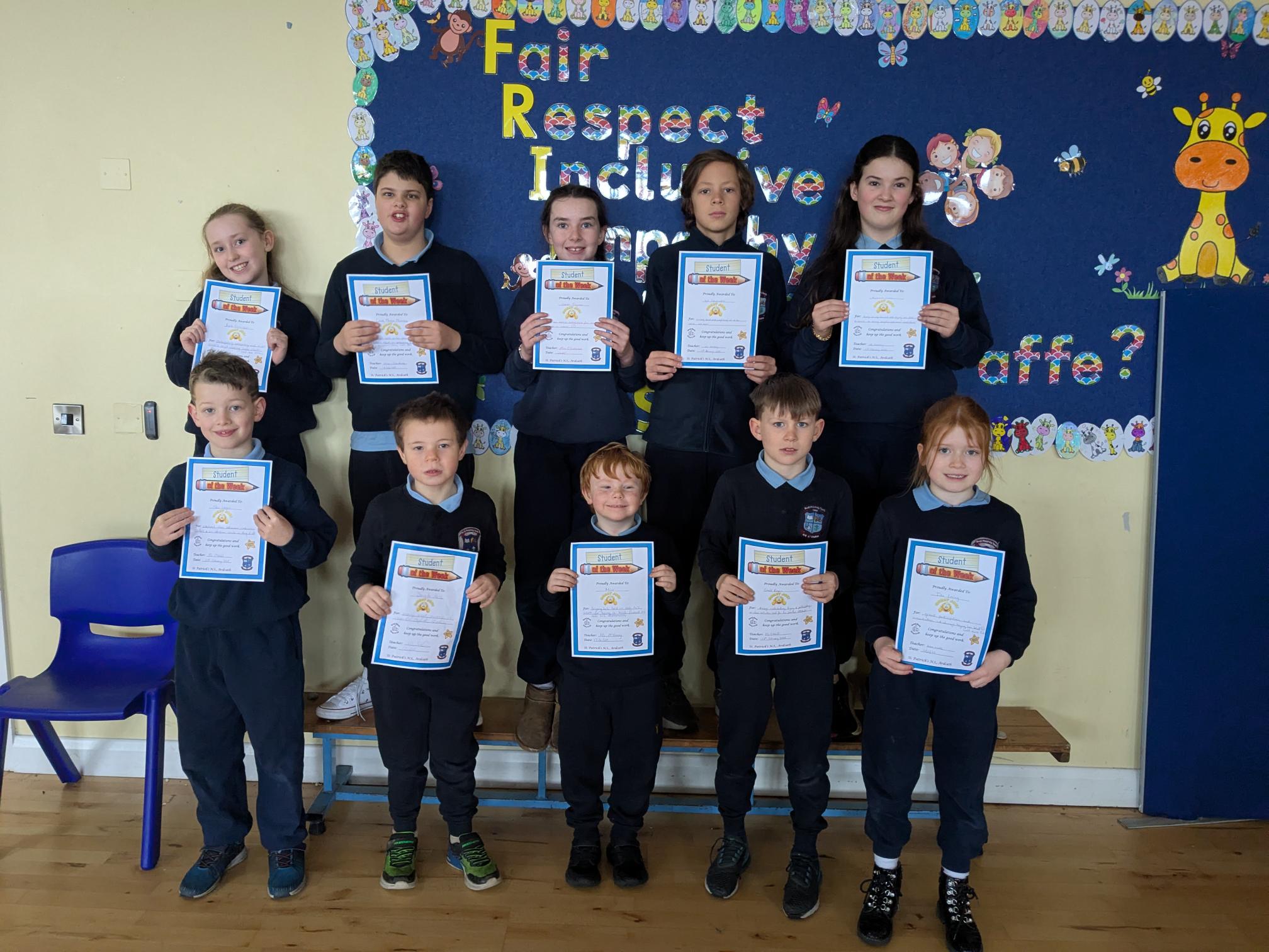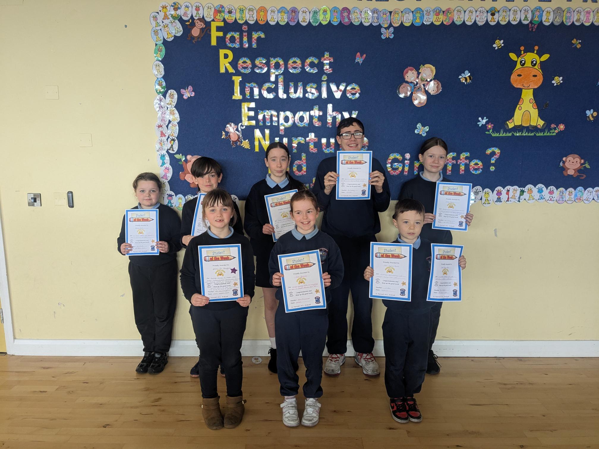 Congratulations to the above pupils who received Student of the Week Certificates and Kindness Award Certificates.